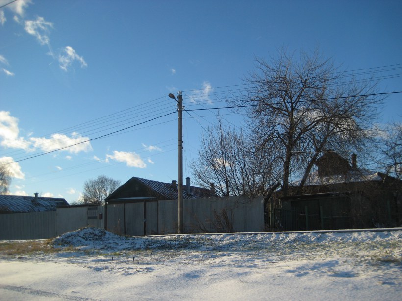 С модными в своё время НКУ01-200, которые повсеместно устанавливались в деревнях и сёлах на рубеже 70-х 80-х гг уже тогда со старомодными для уличного освещения накалками 60-150Вт. Уже в 2003г была заброшенная, а светильники ржавые вусмерть и единственное освещение это едва заметный побочный свет от ЖКУ16-250 с параллельно идущего Дмитровского шоссе.