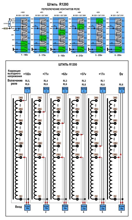 Главная » Участники » Andrey_23rus » 51. 6-ти релейный стабилиз. напряжения (Shtil). Штиль R1200. Пл. управ., без названия. 201-14 » 09.Штиль R1200. Переключение реле, коррекция напряжения.