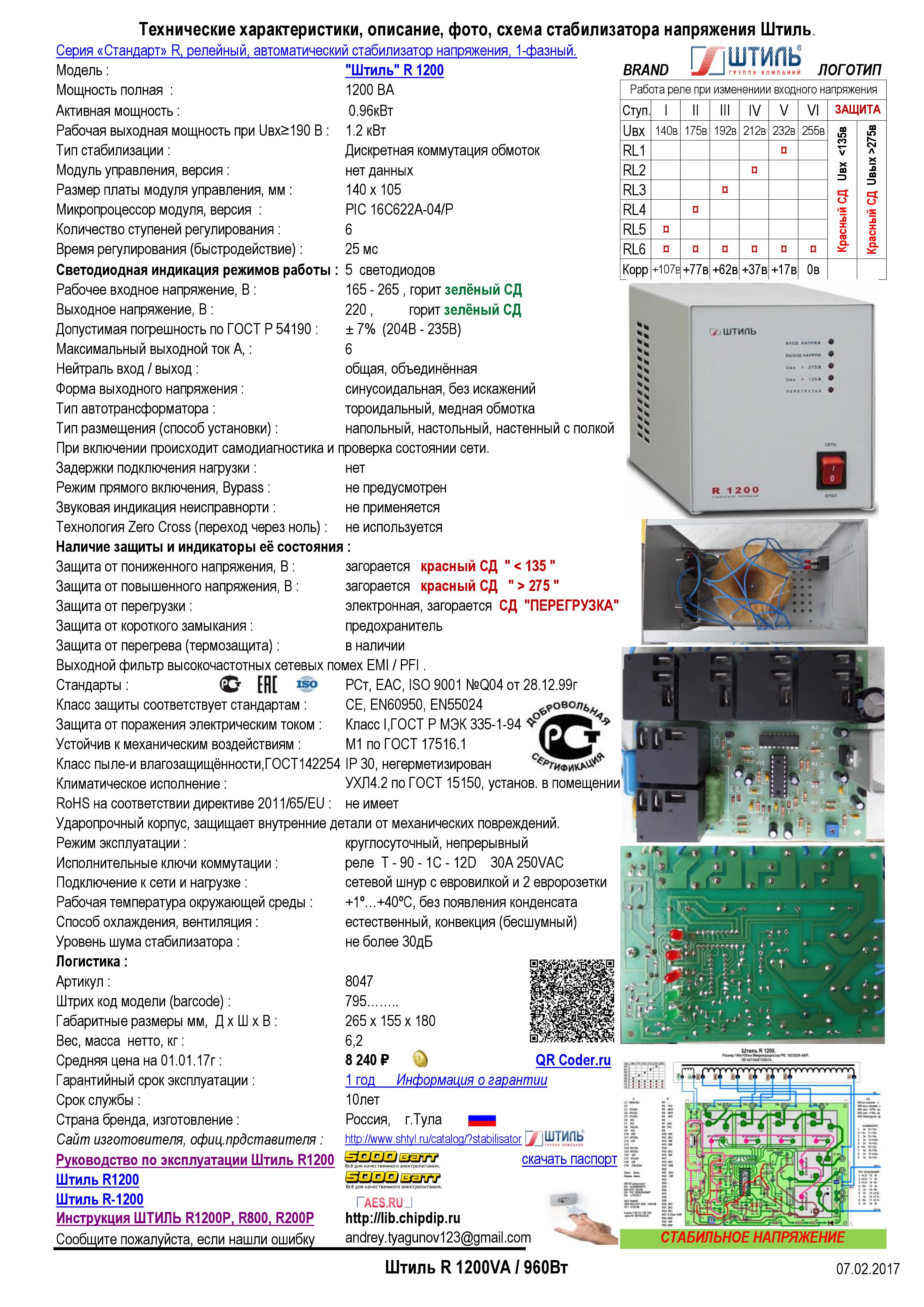 Главная » Участники » Andrey_23rus » 51. 6-ти релейный стабилиз. напряжения (Shtil). Штиль R1200. Пл. управ., без названия. 201-14 » 10.Штиль R1200. Характеристика, описание.