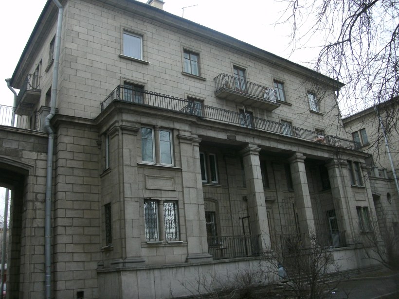 Композиция из трех жилых домов в квартале послевоенной застройки на Приморском проспекте в районе Черной речки (дома 5, 7 и 9). Четырехэтажные здания выполнены из шлакоблоков, цоколи - из природного камня. Симметричные боковые корпуса выходят в красную линию. Центральный корпус заглублен и соединен с боковыми декоративными стенками с проездными арками и калитками.