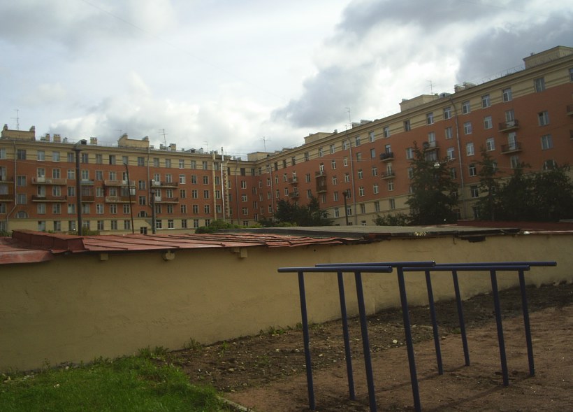 Во дворе находится полузаглубленное бомбоубежище.