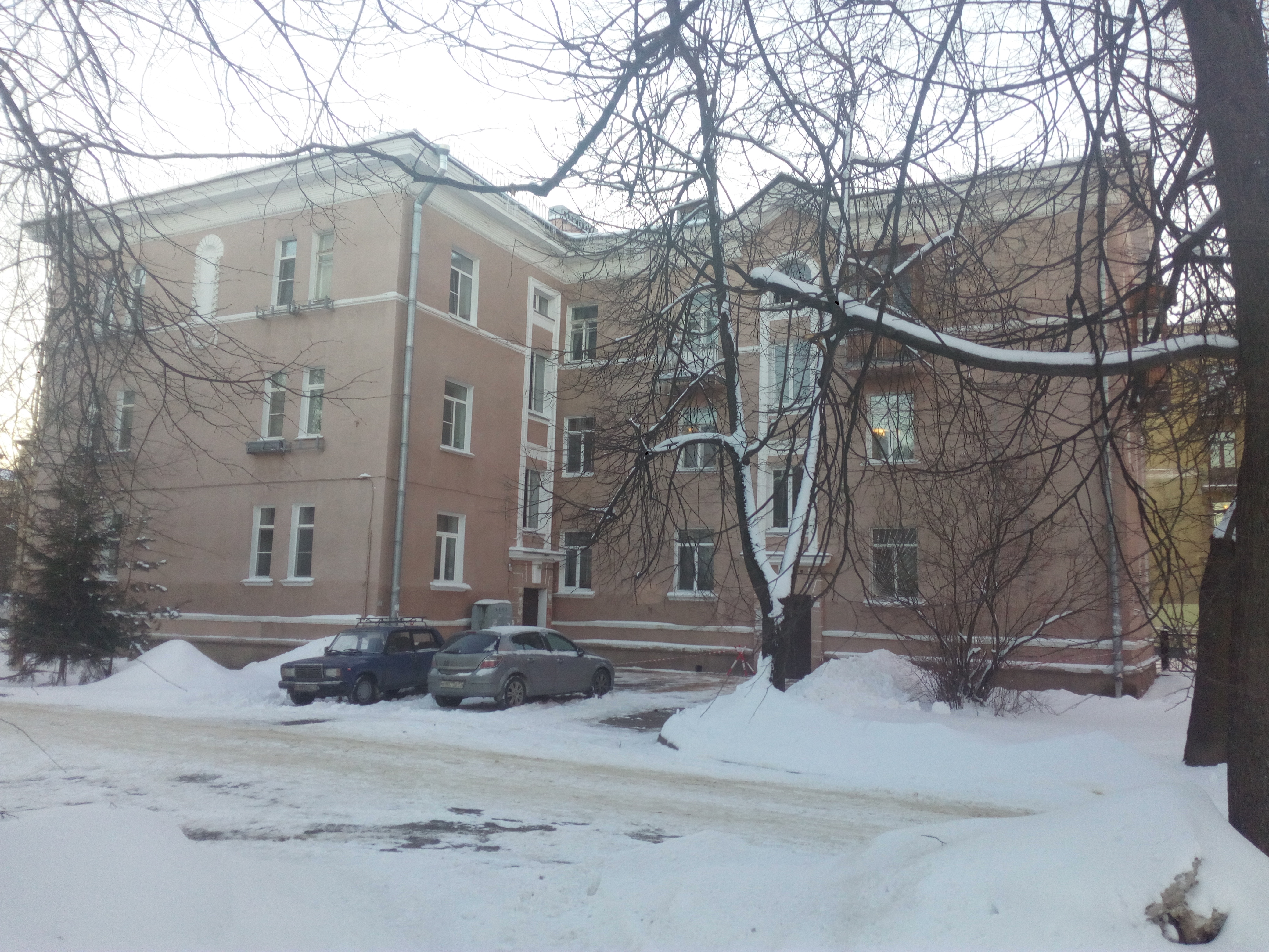 Несколько однотипных угловых жилых дома, построенных в 1950-е ггг в г. Колпино.