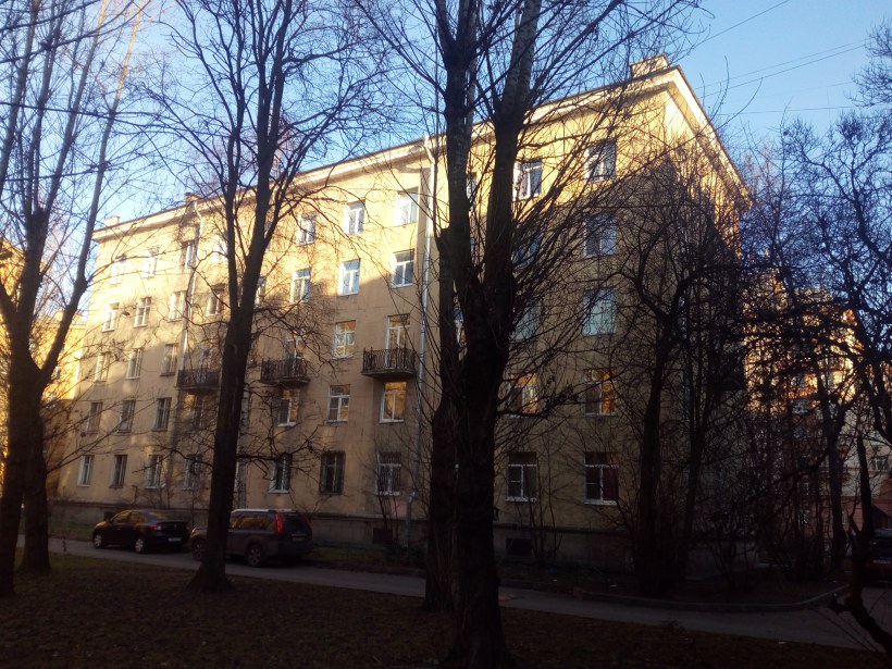 Дом имеет статус памятника архитектуры, как первый в Ленинграде крупнопанельный дом. Его возведение стало началом новой эры в жилищном строительстве Ленинграда и всего Советского Союза - дом был собран из железобетонных панелей, изготовленных в заводских условиях домостроительного комбината. Сооружение его трестом №3 Главленинград строя началось в мае 1955 г. Сборка здания заняла 79 дней, а с учетом отделочных работ - 102 дня. Спроектировано оно было арх. А. В. Васильевым и инж. З. В. Каплуновым.