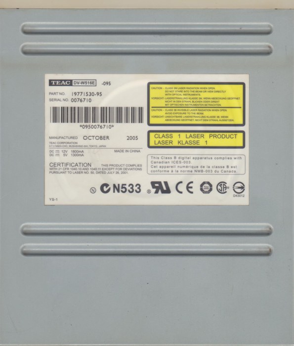 Главная » Участники » alexx12345 » Мои DVD-приводы, только полностью рабочие экземпляры (76 шт) » Teac DV-W516E (s/n..710) » наклейка