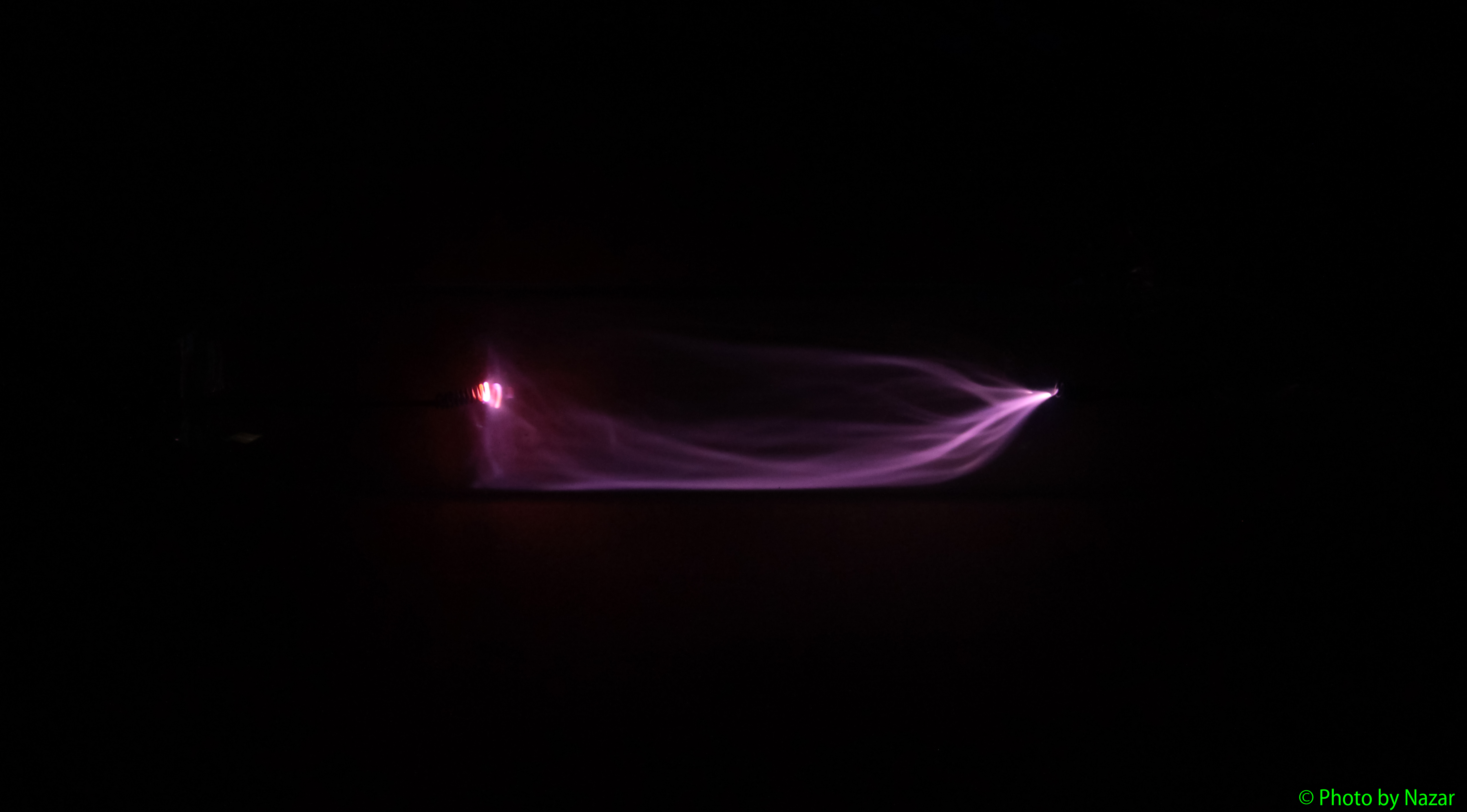 | » Участники » Nazar » Самодельные лампы и все, что с ними связано » Одна из трубок, заполненных газом из лампы накаливания, в работе |