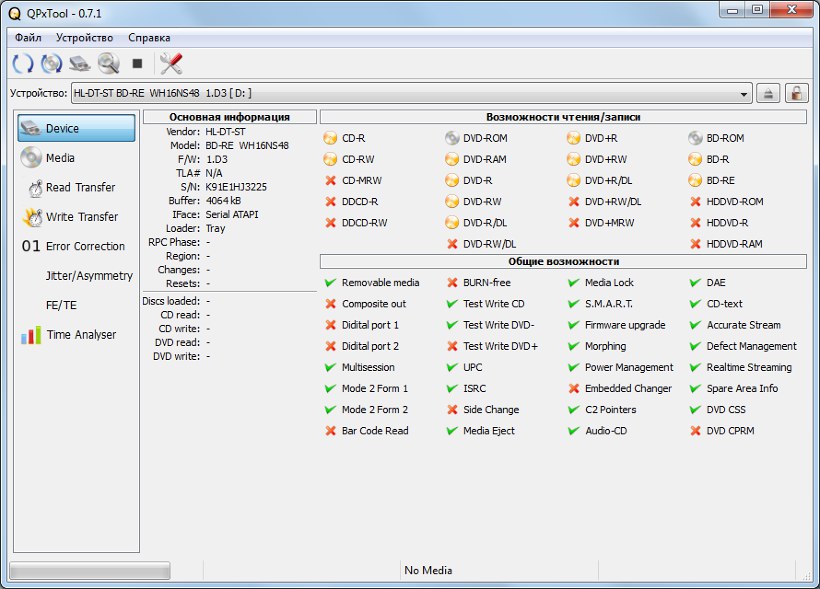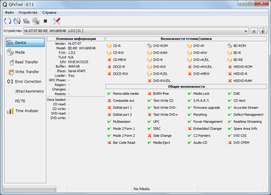 Главная » Участники » alexx12345 » Мои BD-приводы, только полностью рабочие экземпляры (34 шт) » HL-DT-ST WH16NS48 (s/n..576) » QPxTool