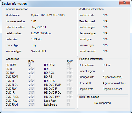 Главная » Участники » alexx12345 » Мои DVD-приводы, только полностью рабочие экземпляры (76 шт) » Optiarc AD-7280S (s/n..830) » BDRTool