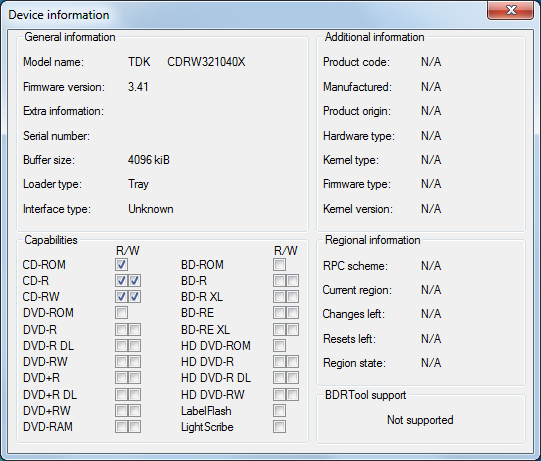 Главная » Участники » alexx12345 » Мои CD-приводы, только полностью рабочие экземпляры (20 шт) » TDK Cyclone AI-321040X (s/n..542) » BDRTool