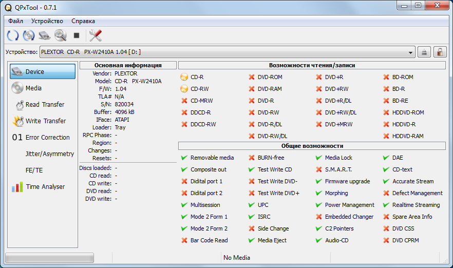 Главная » Участники » alexx12345 » Мои CD-приводы, только полностью рабочие экземпляры (20 шт) » Plextor PX-W2410TA (s/n..034) » QPxTool