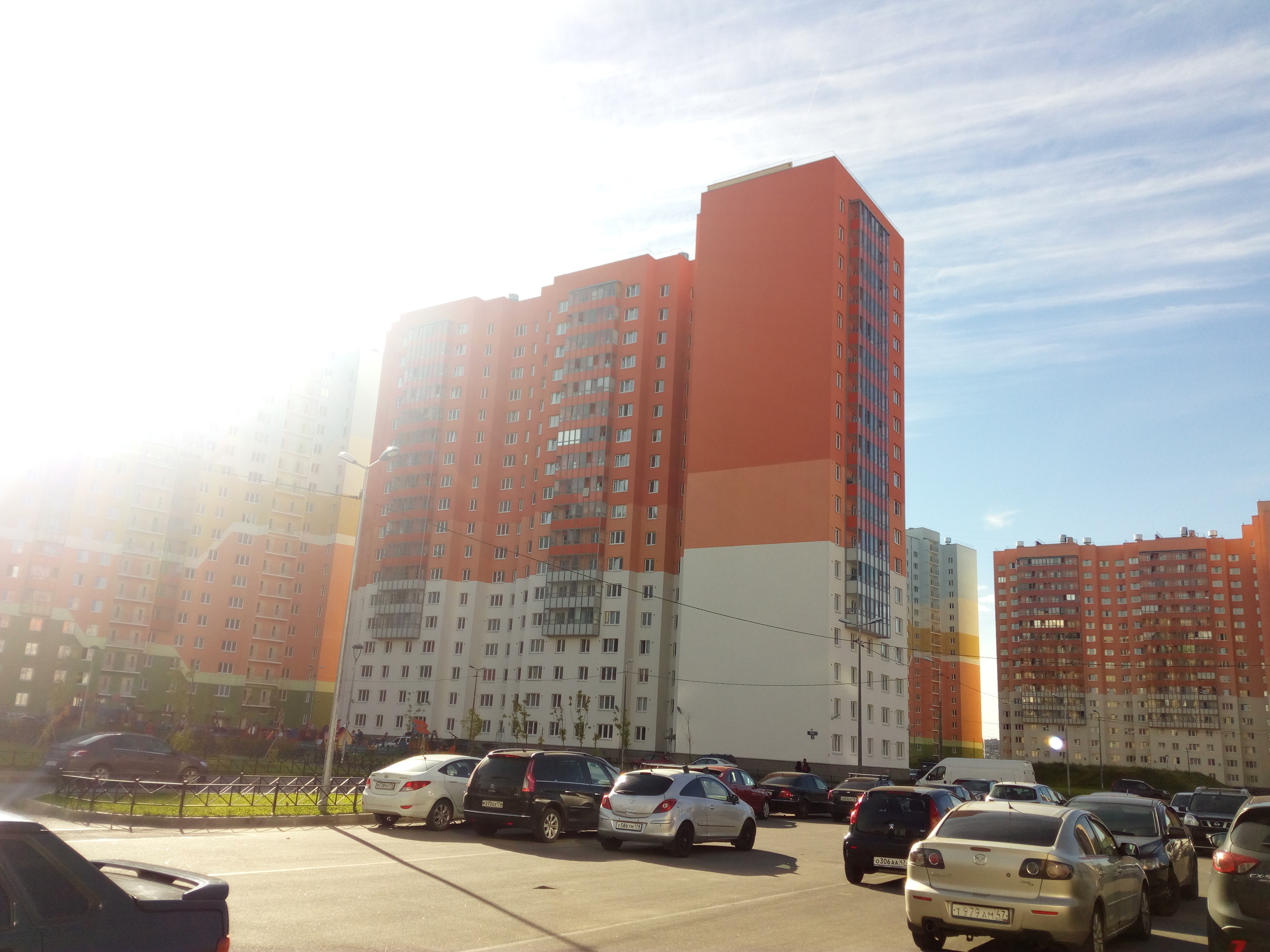 ул. Маршака 16к4 и Муринская дорога 80к1 - два панельных дома первой очереди комплекса "Новая Охта" группы ЛСР. Объединяет их что каждый состоит из трех секций, одна из которых угловая.