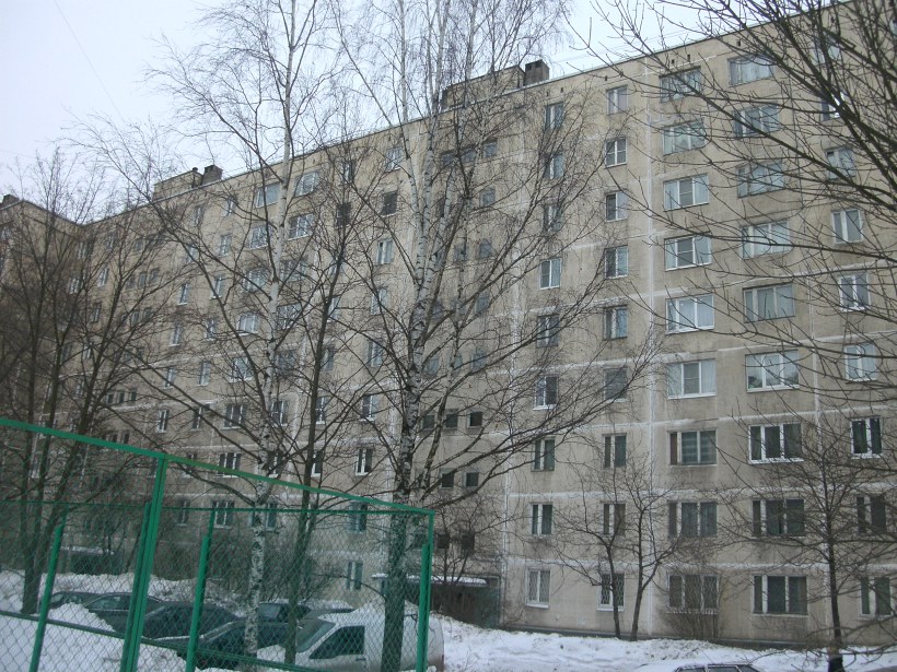 Несколько первых секций имеют окна парадных как у более старых вариантов серии – двухсекционные прямоугльные и с коричневых обрамлением.