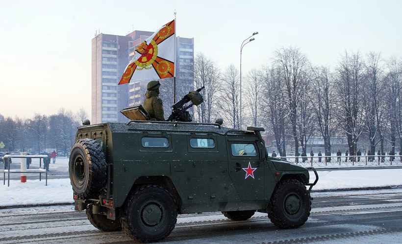Выдвижение военной техники на репетицию парада, посвященного 70-летию полного снятия блокады