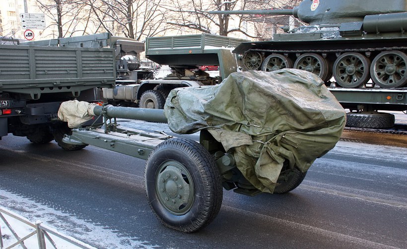 Выдвижение военной техники на репетицию парада, посвященного 70-летию полного снятия блокады