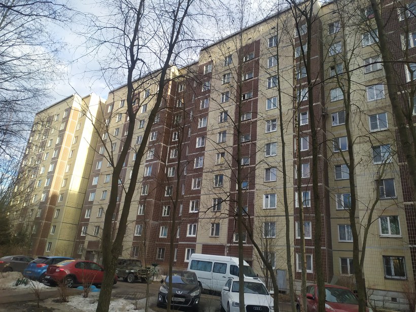 На фото парадные 4-6 дома, состоящего из нескольких домов и секций 121 серии, пристроенных друг к другу, но имеющих один адрес. Нумерация квартир продолжается безостановочно. Более подробно о доме см тут: