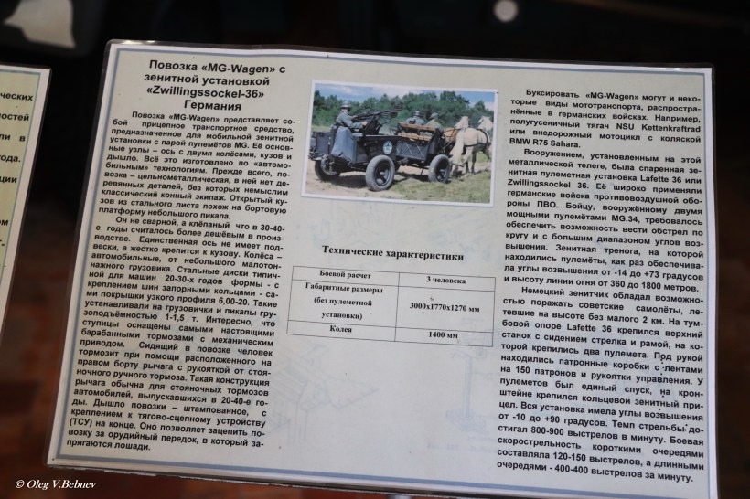 | » Участники » Олег Бебнев » Государственный Военно-технический музей » Повозка «MG-Wagen» с зенитной установкой «Zwillingssockel-36» |