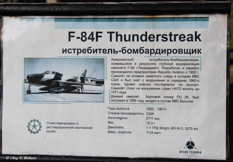 | » Участники » Олег Бебнев » Музей техники Вадима Задорожного » Истребитель-бомбардировщик F-84F Thunderstreak |