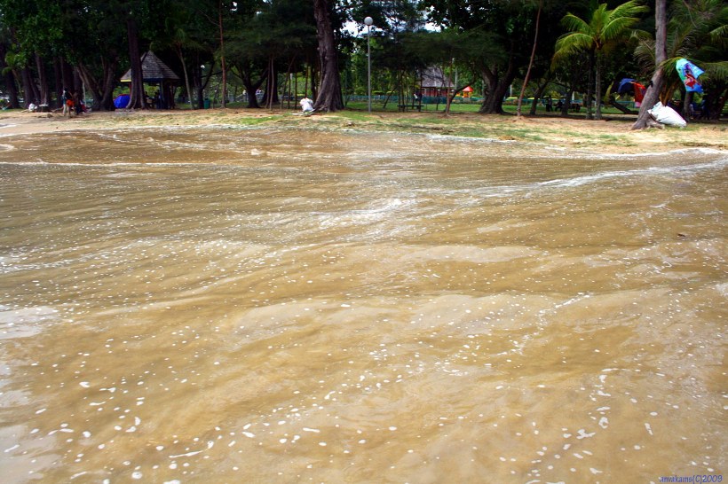 Tangung Aru beach (сильным приливом волны залило весь пляж до травы).