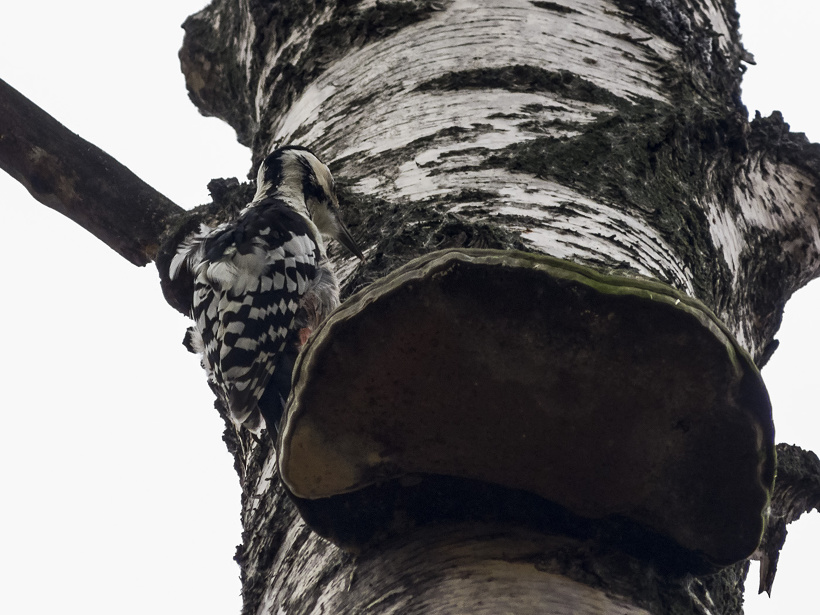Белоспинный дятел на берёзе1