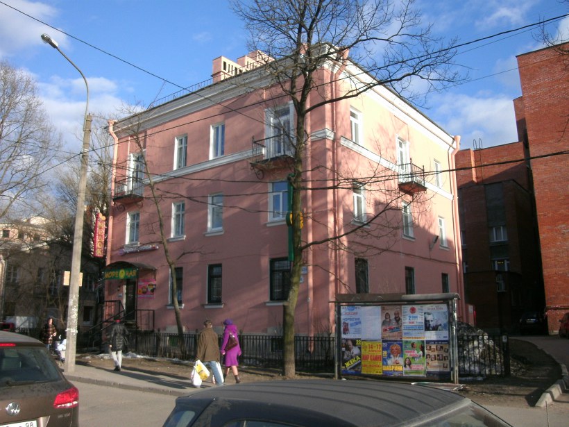 Трехэтажный жилой дом на углу Костромского пр. и Енотаевской ул. в квартале малоэтажной послевоенной застройки. Скромно декорированное оштукатуренное здание . Прошло капремонт. Помещения первого этажа переделаны для нужд современного бизнеса, устроены дополнительные входы.