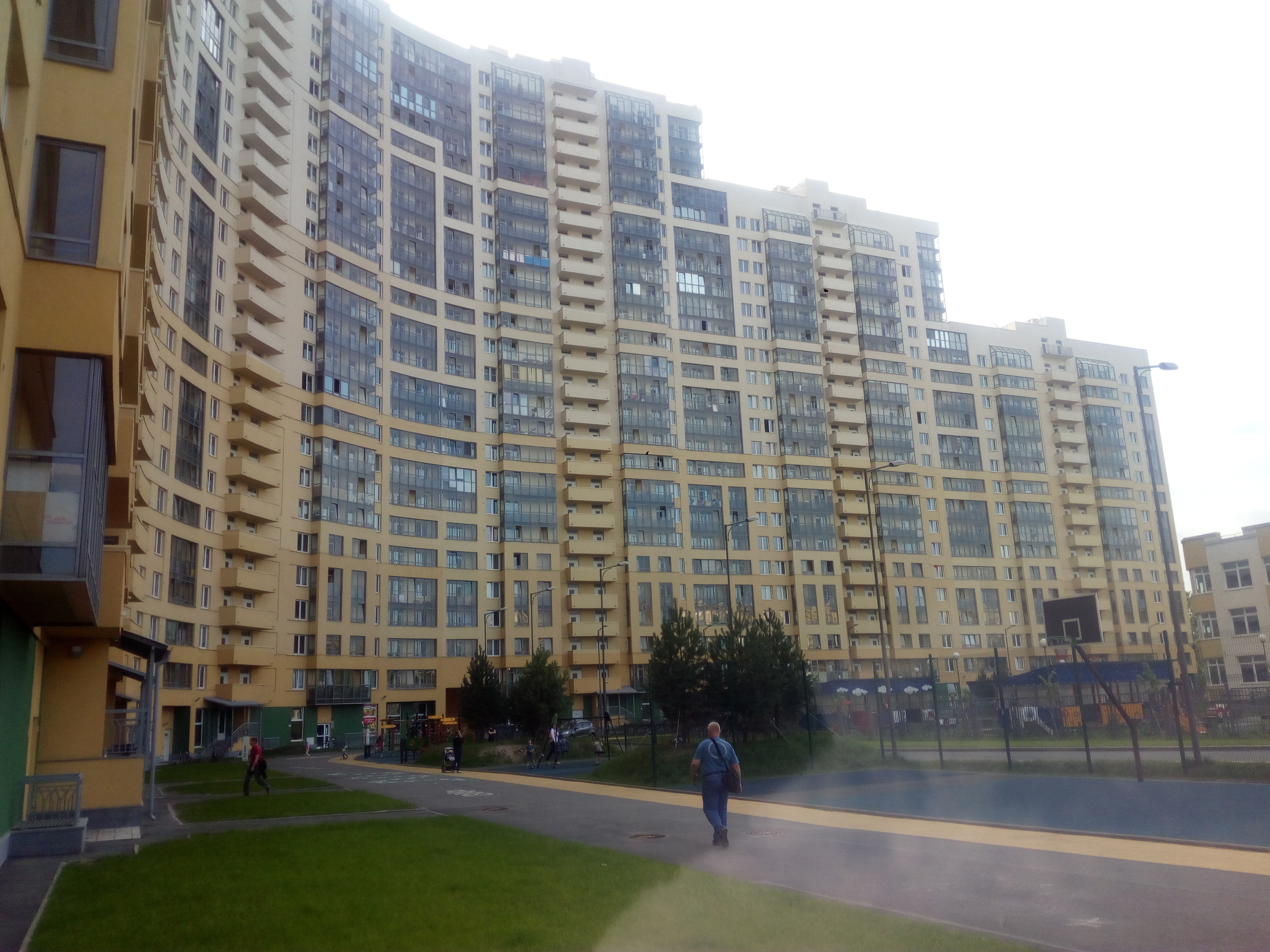 Полукруглый корпус с проходом во двор в пятой парадной.