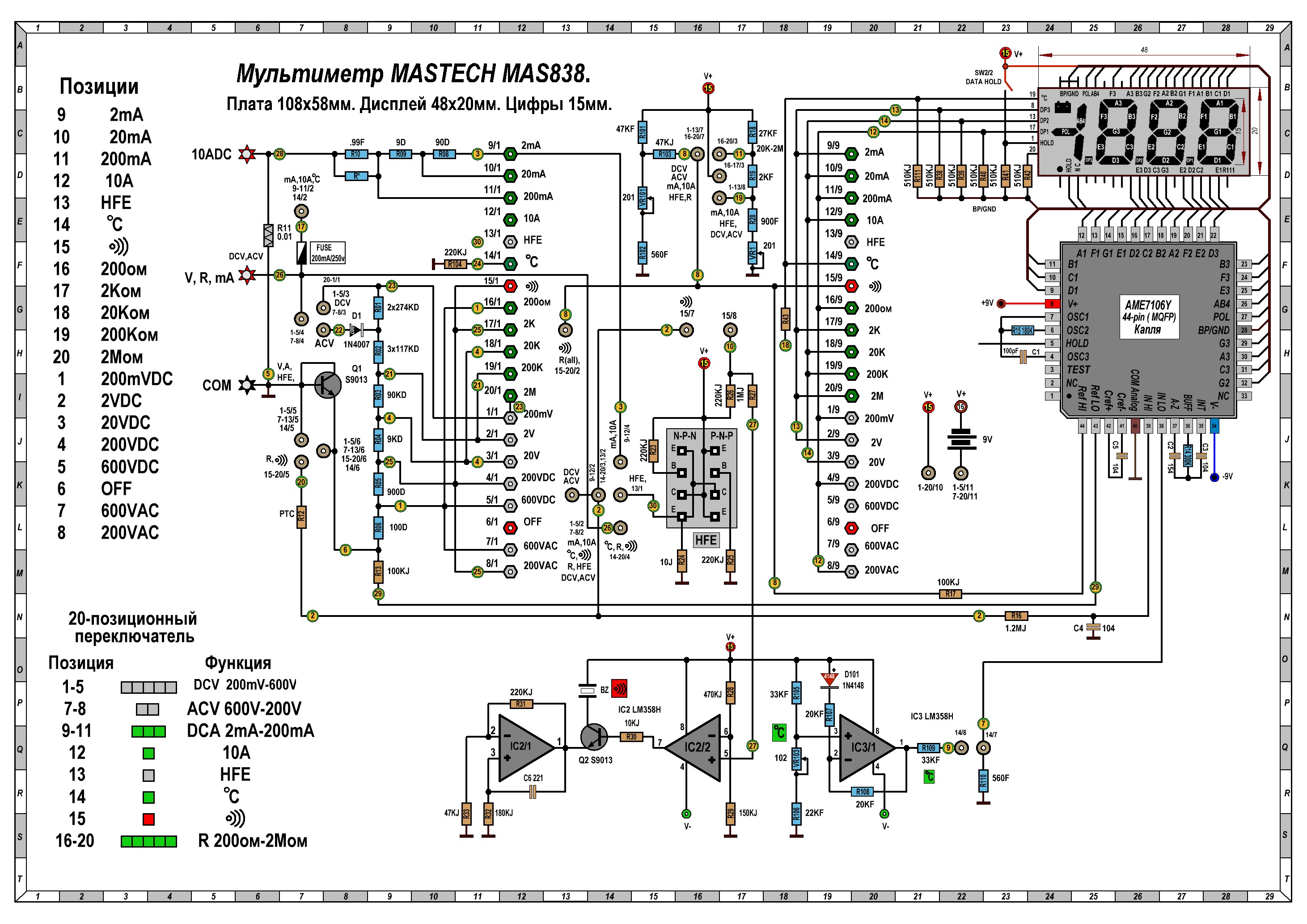 Мультиметр MASTECH MAS838.Схема принципиальная.