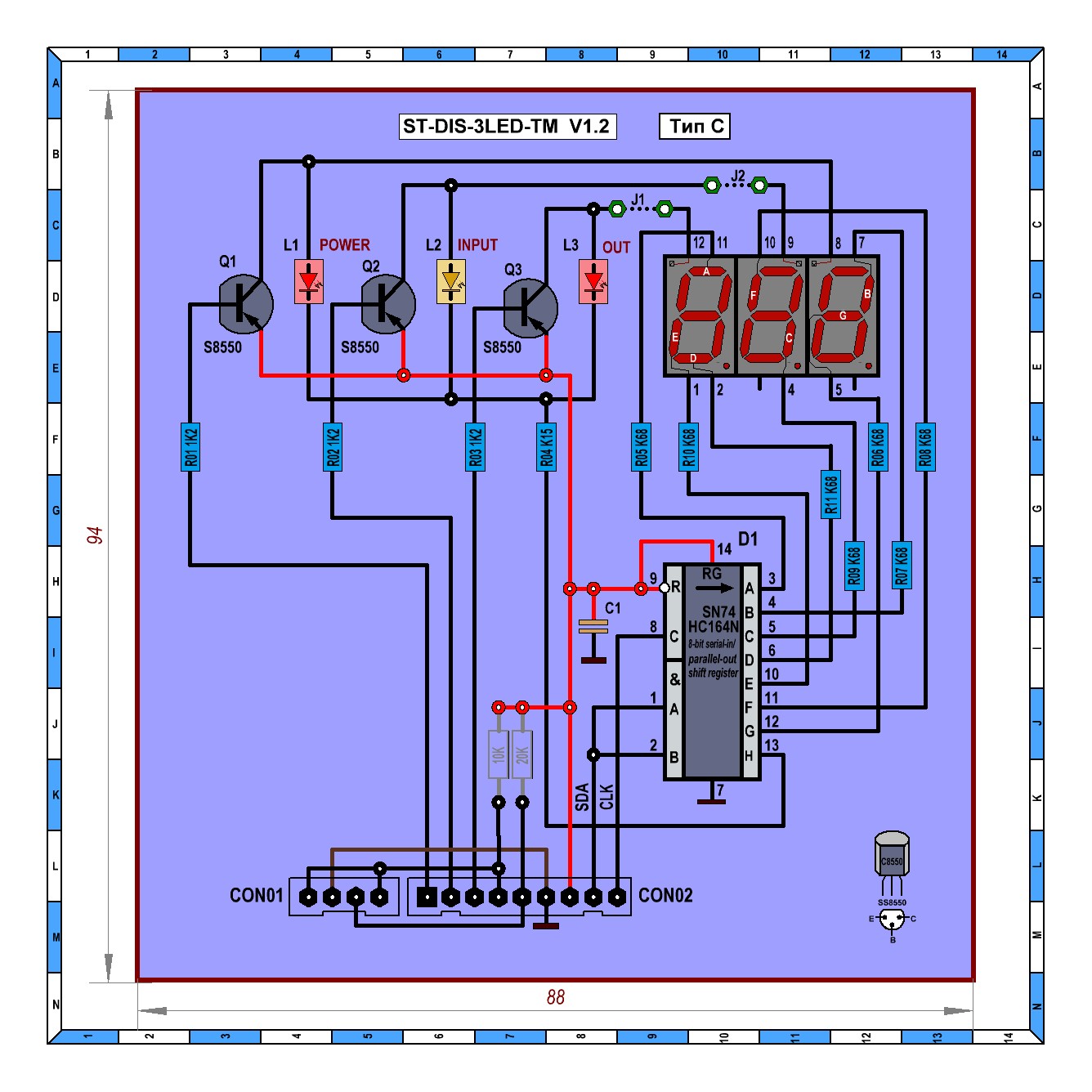 07.Схема индикации ST-TM820K 3LED. Тип С.