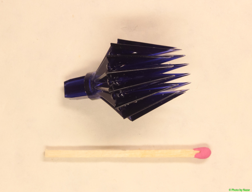 Вот такого темного, сине-фиолетового цвета. На просвет неокрашенной лампой дает насыщенный, тусклый сиреневый оттенок.