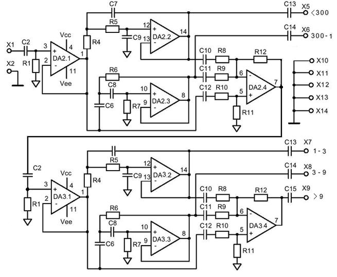 Частоты среза: 300 Гц -1 кГц.