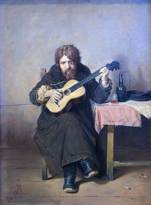 В. Г. Перов, 1834-1882. Гитарист-бобыль, 1865. Дерево, масло.
