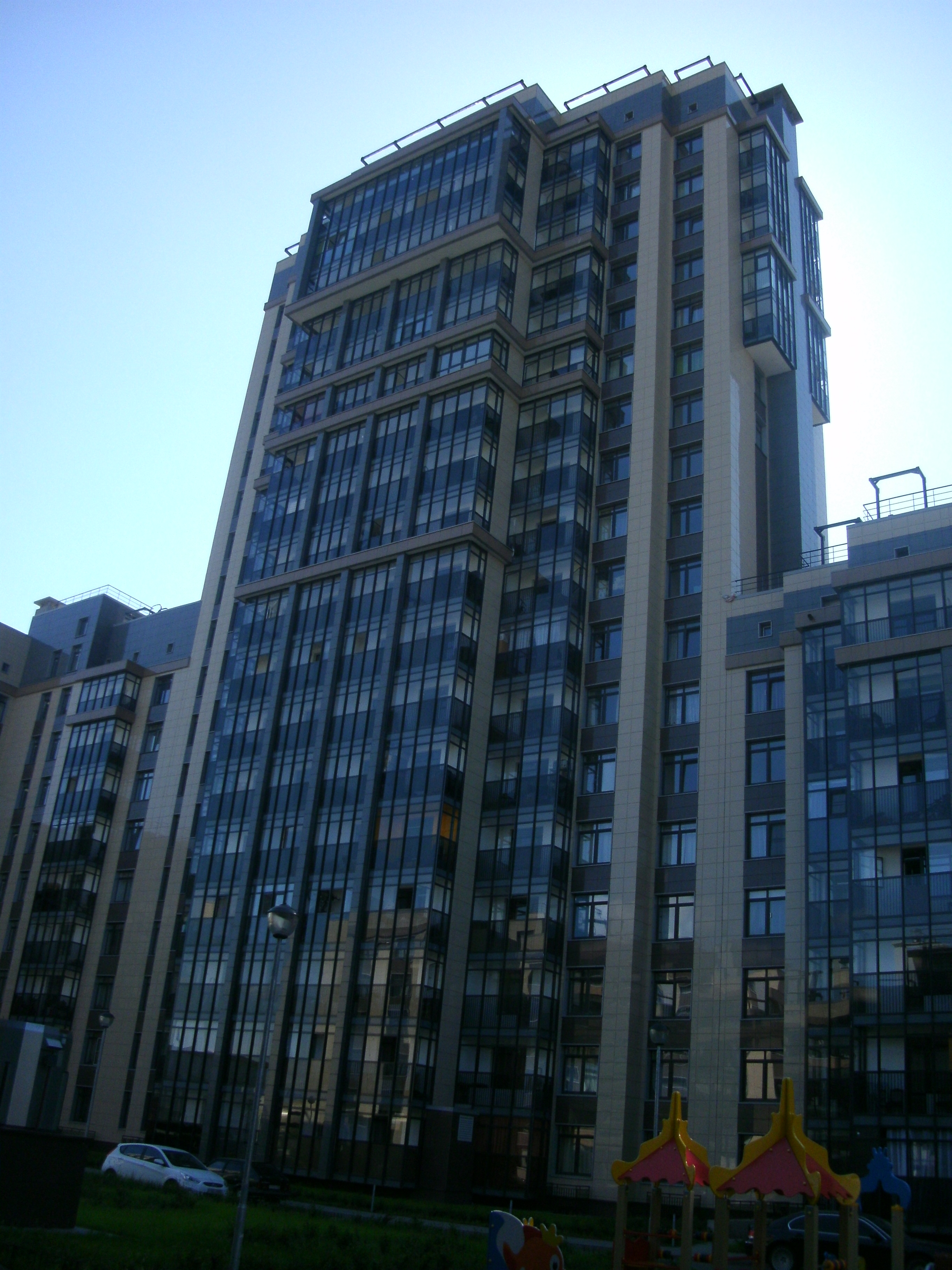 Новый жилой комплекс класса комфорт "More" располагается рядом с Финским заливом и Южно-Приморским парком Победы, в одном из экологически чистых районов Петербурга. Жилой комплекс состоит из двух частей, каждая из которых включает в себя 13-14 разновысотных (5, 6, 7, 9, 11, 20 этажей) жилых секций со встроенным помещениями.