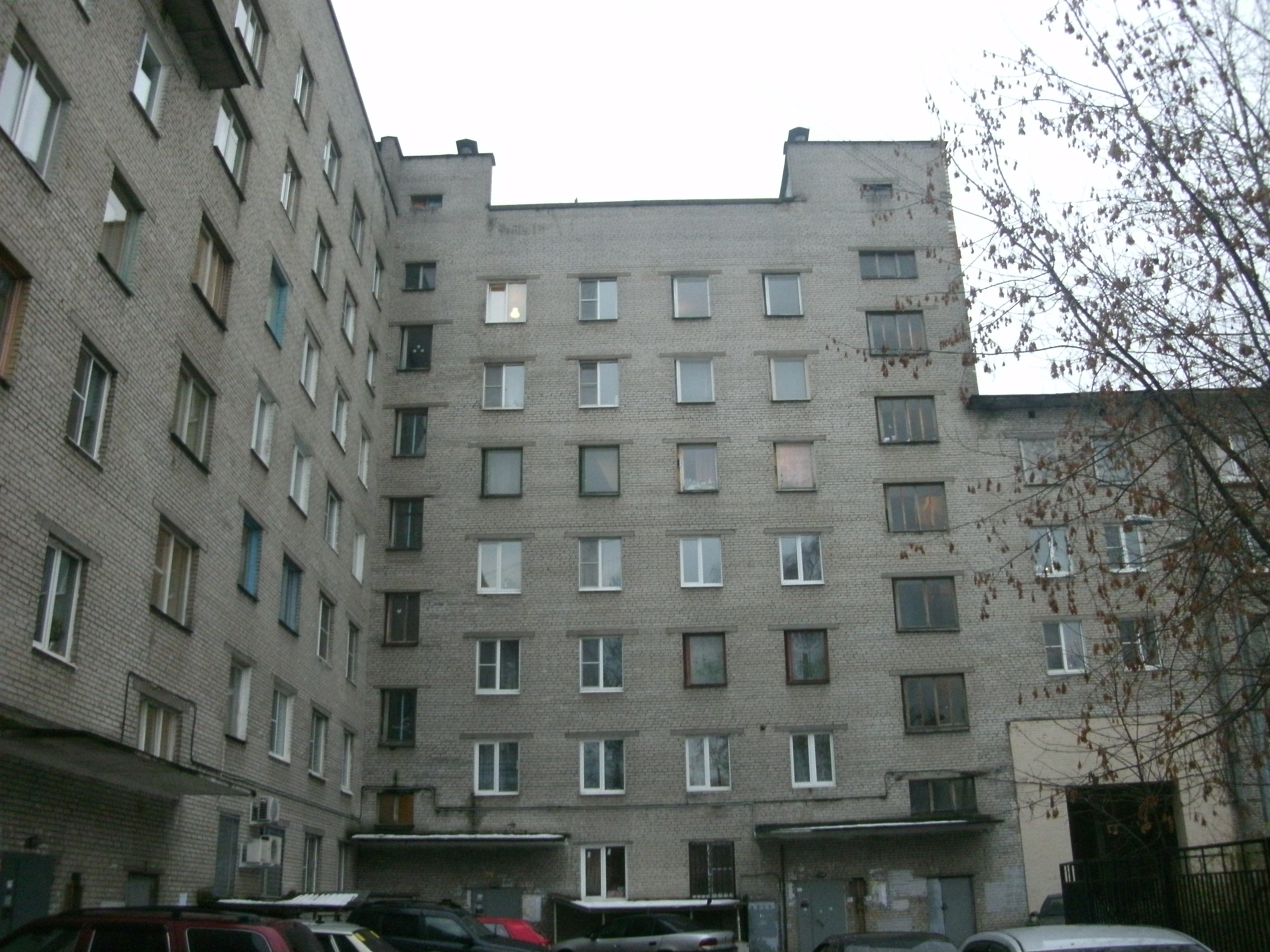 Трехсекционный семиэтажный дом-вставка между кирпичными 1-528кп, но является производной от этой самой 1-528кп и имеет на заднем фасаде эркеры. Построен в 1970-е годы - оконные рамы без форточек
