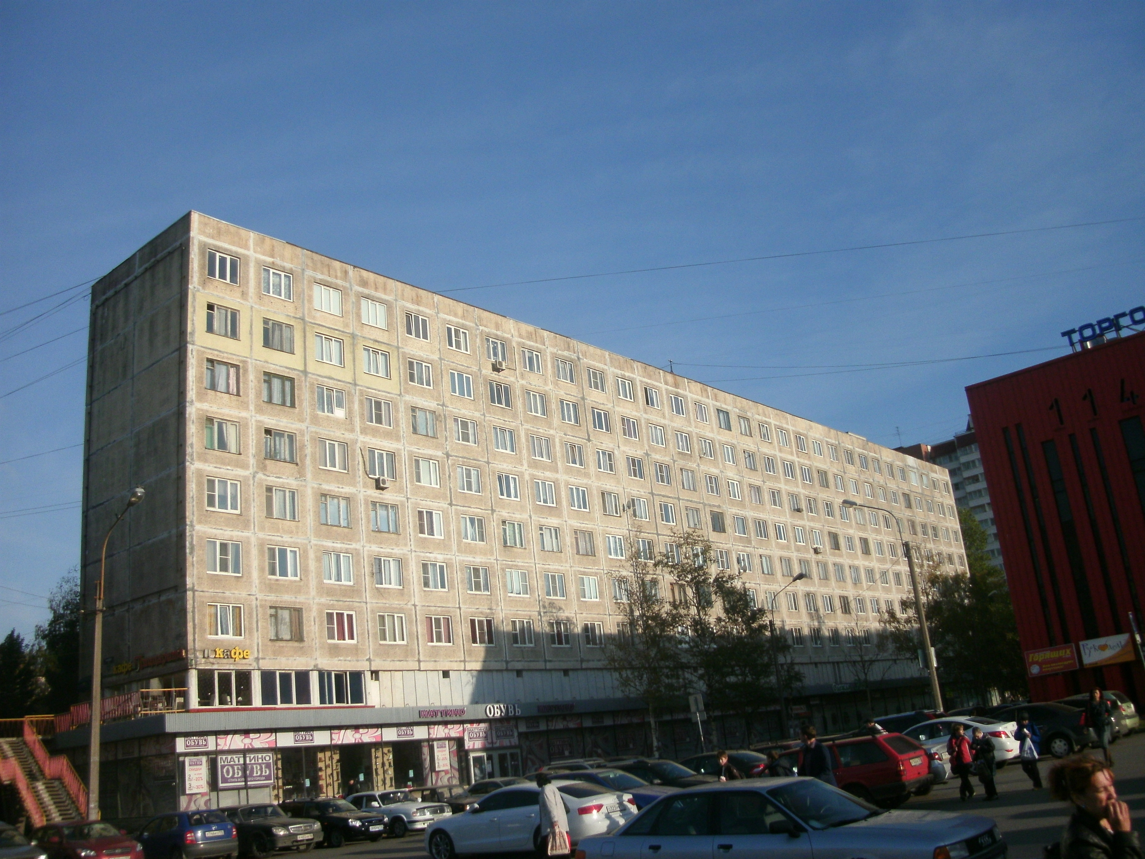 Девятиэтажный (2 первых этажа нежилые) шестиподъездный панельный жилой дом, построенный из панелей серии ОД в 1964 году.