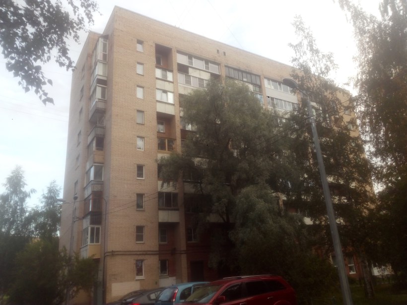 Девятиэтажный жилой дом, первый из кирпичных домов, построенных вдоль красной линии пр. Просвещения, на участке от пр. Энгельса до ул. Руднева.