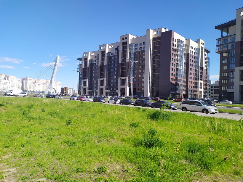 «Жемчужный берег» Comfort + . Три корпуса высотой 10-12 этажей располагаются в северной части квартала. Вид из большинства квартир с окнами на север открывается на акваторию Финского залива, с окнами на юг – на Матисов и Дудергофский каналы, парк.