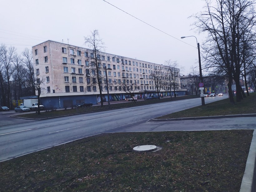 Все шесть домов этой модификации, первый этаж которой предназначался под магазины, построены друг напротив друга в двух кварталах на Краснопутиловской ул.