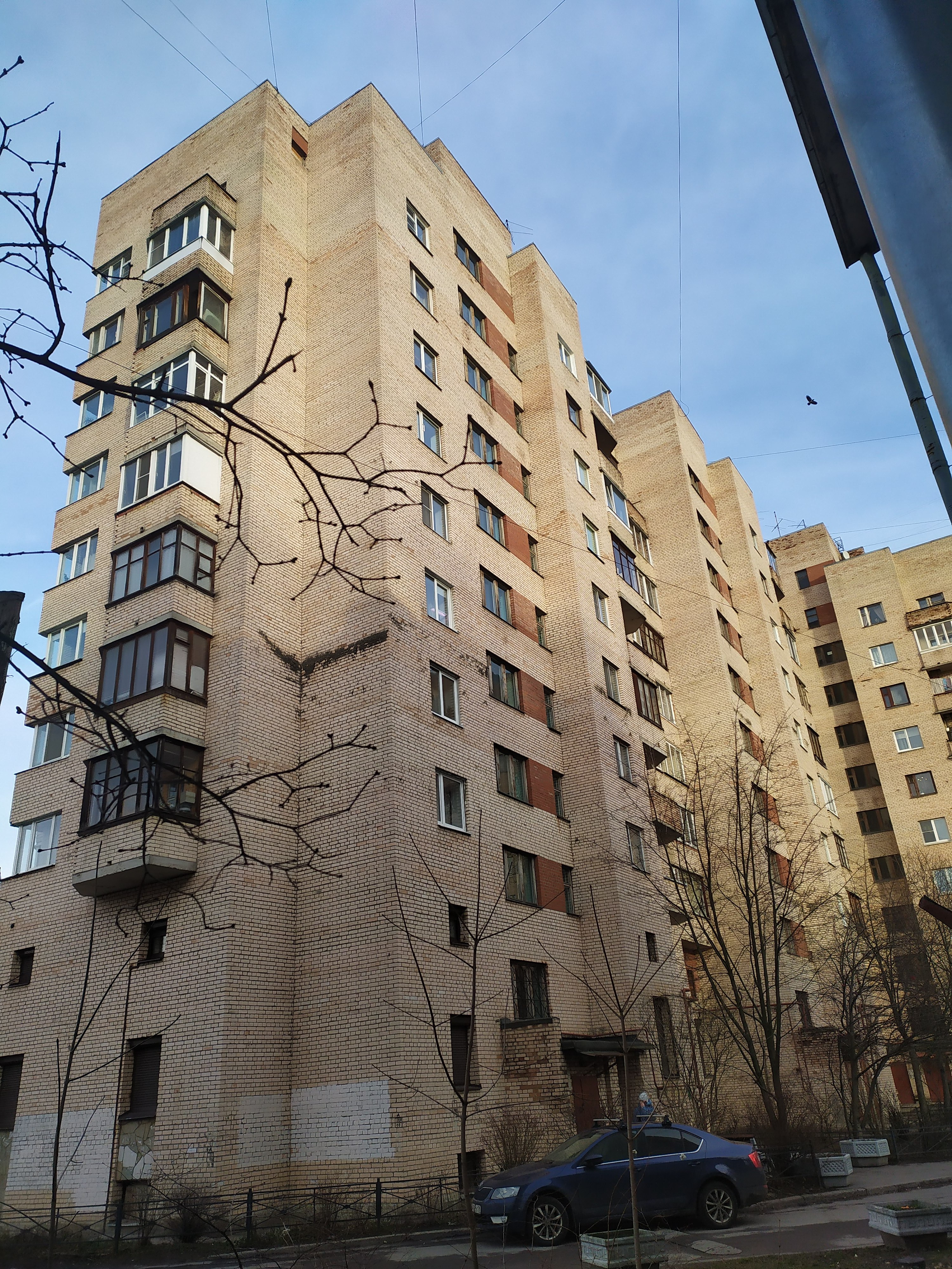 10-2 этажей, 6 парадных и 233 квартиры с двумя первыми не жилыми этажами.