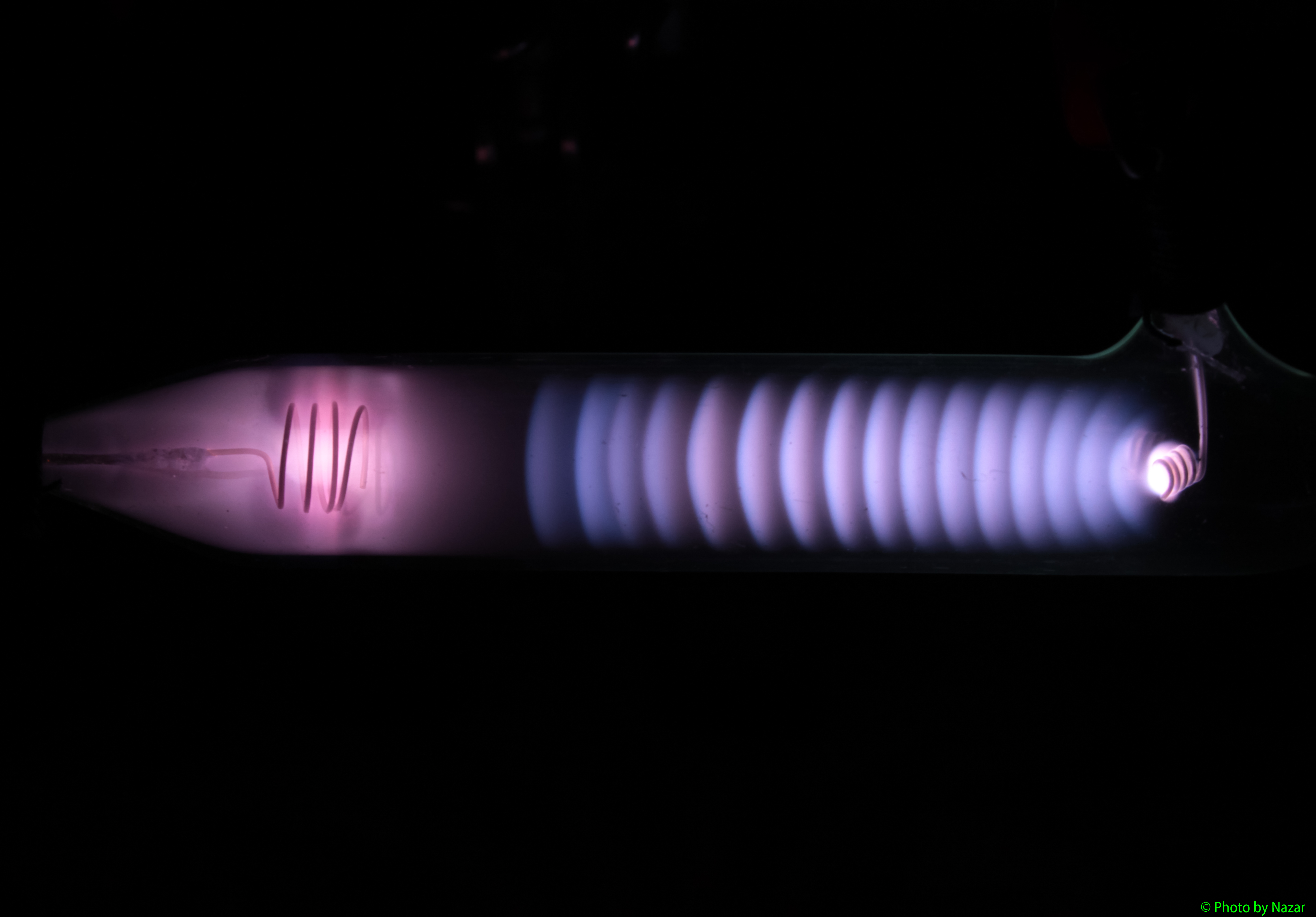| » Участники » Nazar » Самодельные лампы и все, что с ними связано » Разряд в водороде (предположительно), повторный прогрев катода |