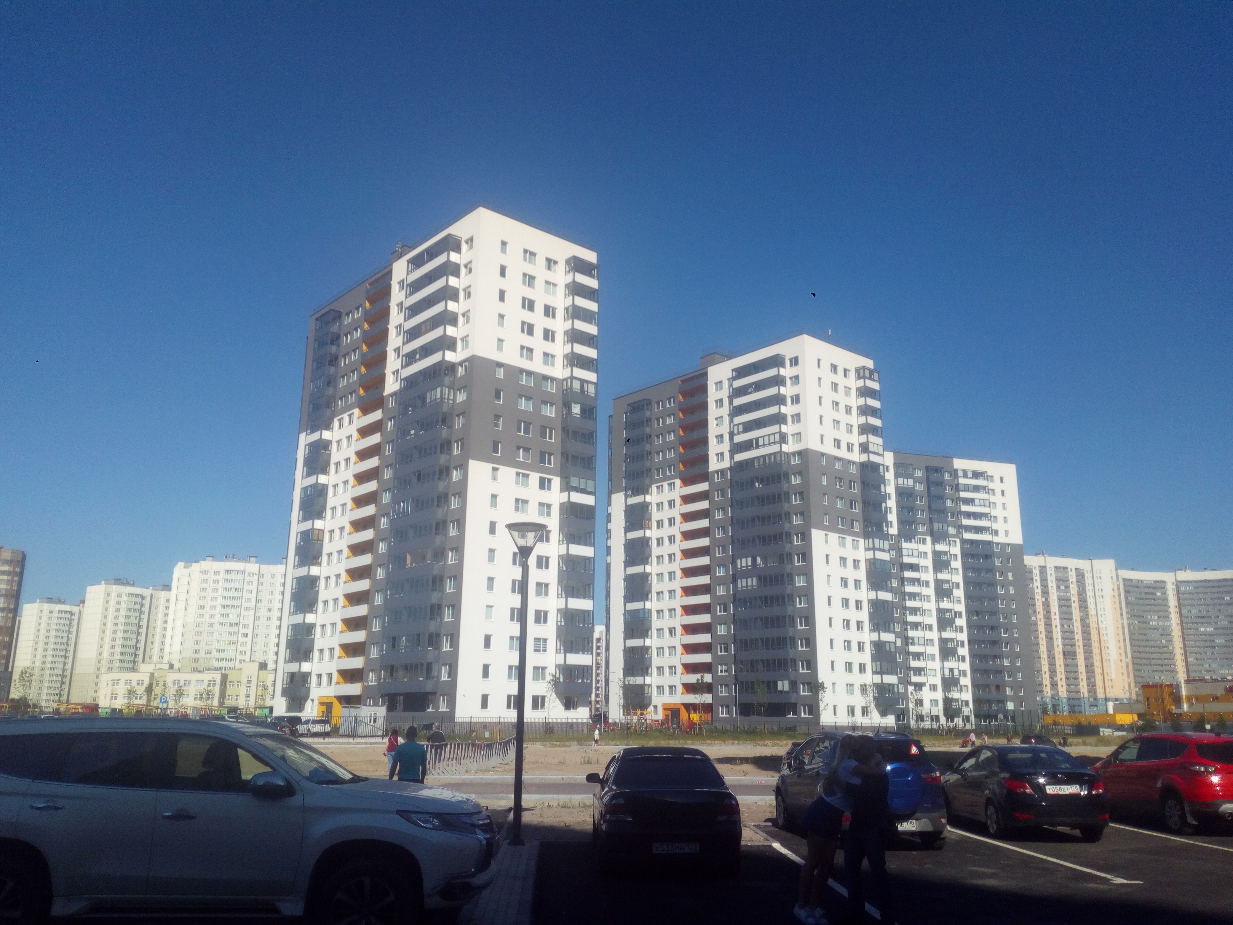 18 + 18 + (18,18) + (18,18) этажей, 6 парадных (1+1+2+2) и 820 квартир (144+144+266+266)