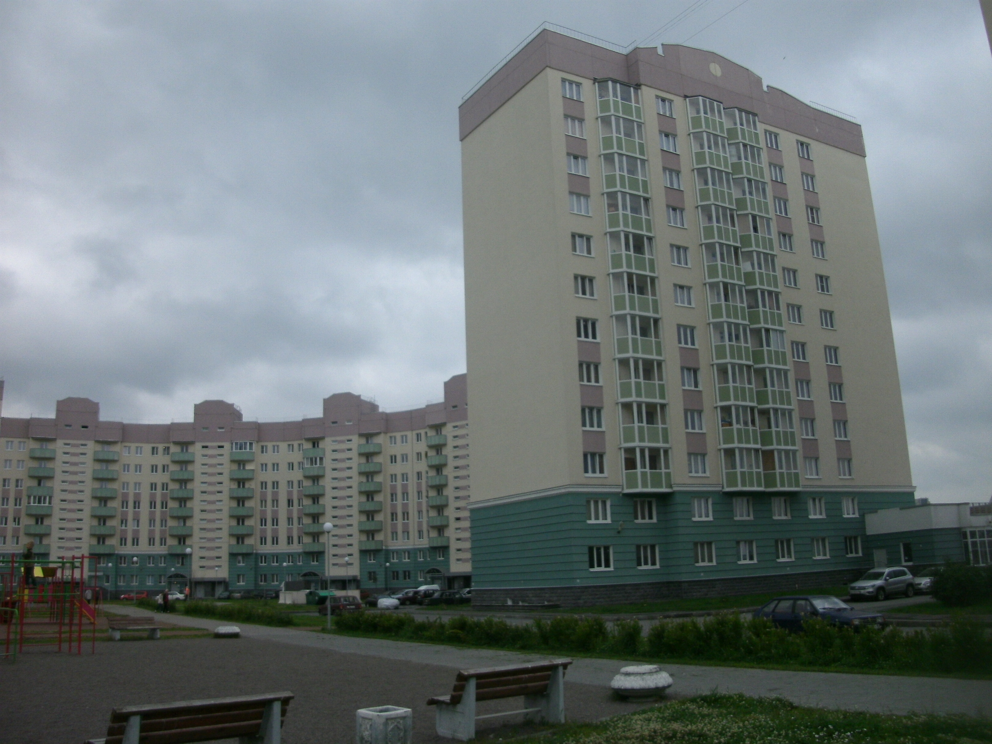 (12,8,8,8,8,8,8,10,10,12,14) + 14 этажей, 12 парадных (11+1) и 525 квартир (456+69)