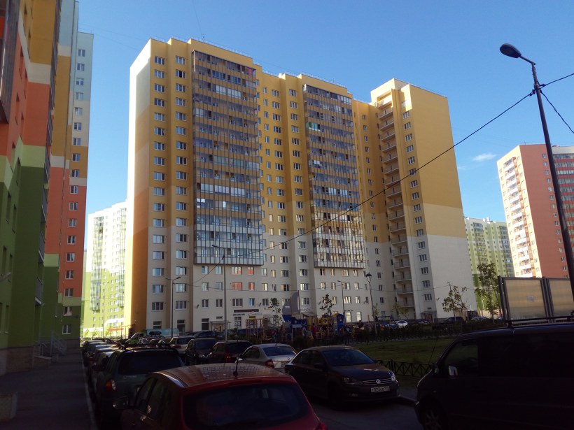 ул. Даниила Хармса 3к1, ул. Маршака 14к3 и Муринская дорога 68к2 - три панельных дома первой-второй очереди комплекса "Новая Охта" группы ЛСР. Объединяет их что каждый состоит из трех секций, одна из которых угловая.