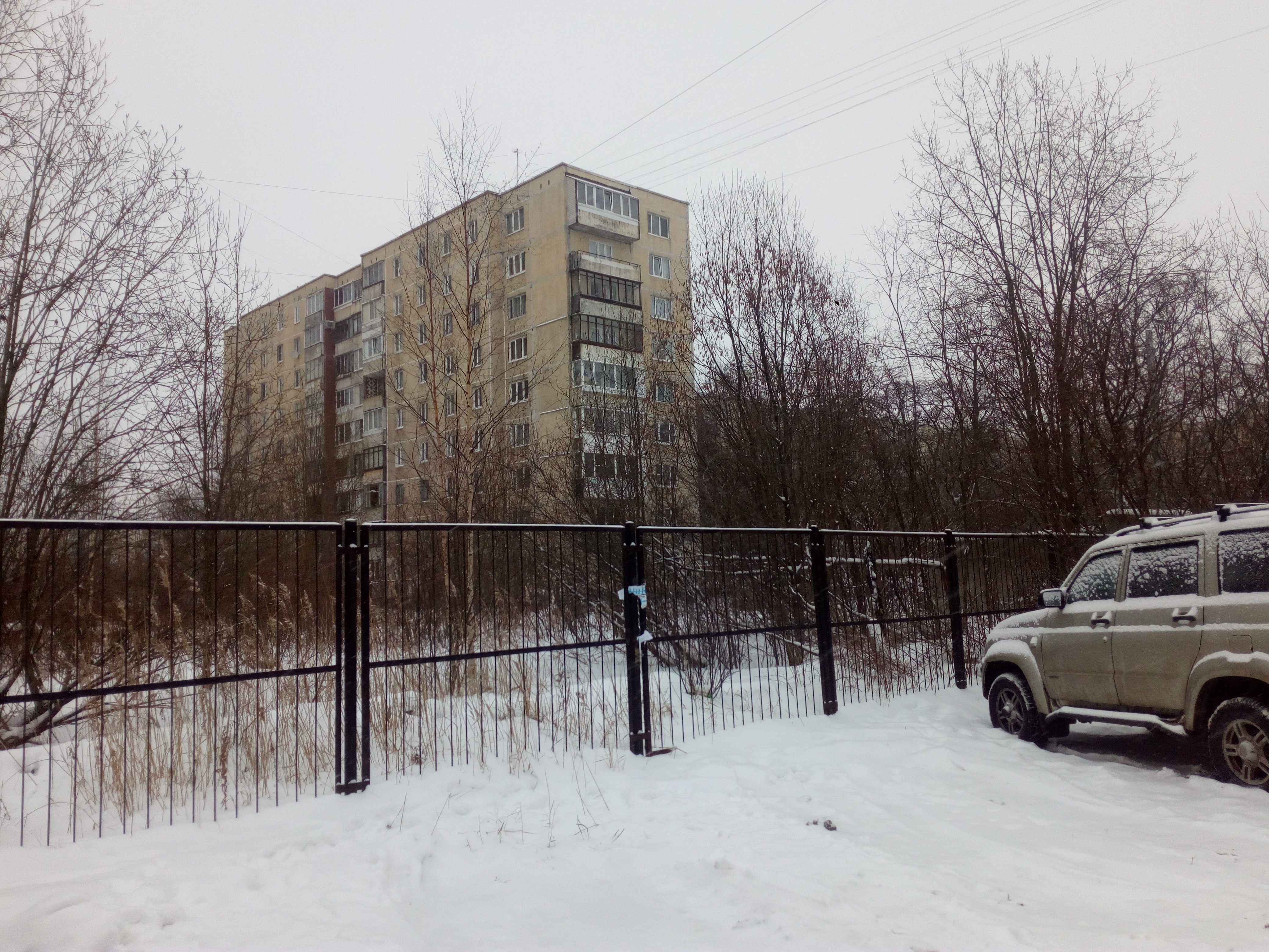 На фото парадные 1-2 дома серии 1ЛГ-602В, состоящего из нескольких типовых проектов, пристроенных друг к другу под прямыми углами. Нумерация квартир продолжается безостановочно.