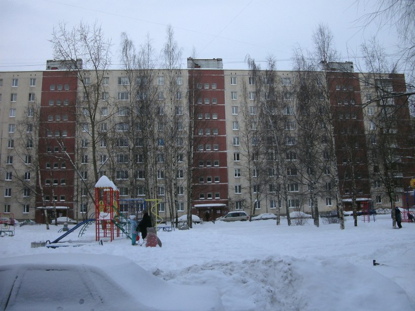 ул. Десантников 32к3, ул. Маршала Захарова 25 и ул. Маршала Захарова 35к2, и 37к2 - четыре дома 1ЛГ-602В, 1975-1984гг объединяет наличие угловой секции в начале или конце дома. Но если ул. Десантников 32к3 и ул. Маршала Захарова 25 имеют всего три секции, то ул. Маршала Захарова 35к2 и 37к2 уже четыре. И эти два дома зеркально отражены относительно друг друга.