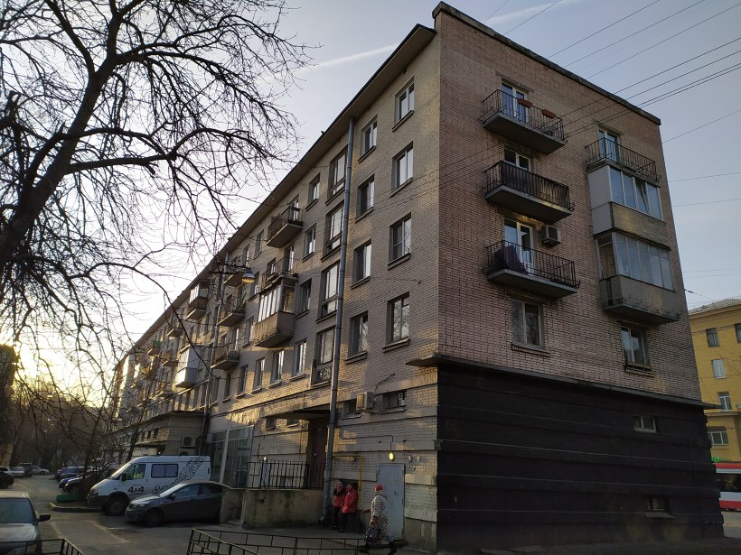 Первый этаж этих домов нежилой и чаще всего отдан под магазины. Окна парадных большие, как у серии 1-527. У таких домов балконы "переехали" с фасада на торец как у обычных 1-528кп.